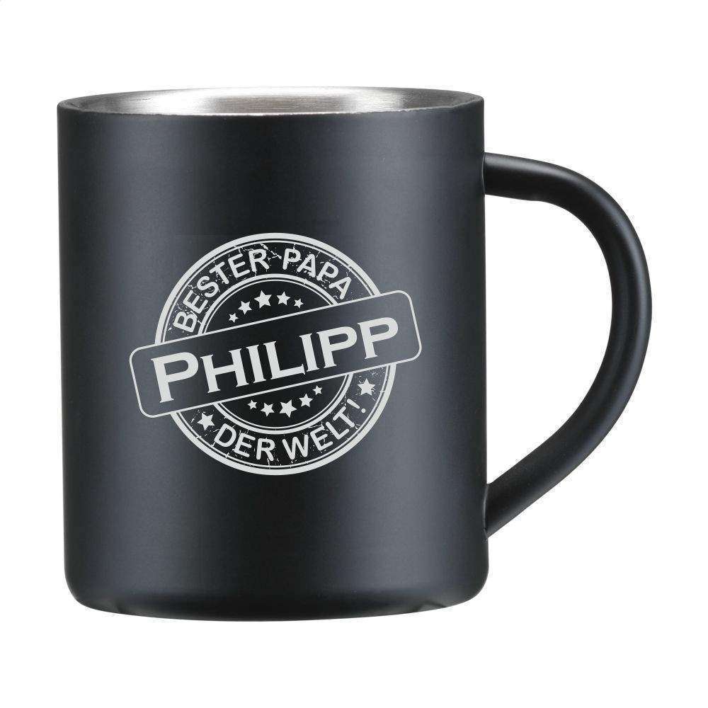 Thermobecher Bester Opa Die schöne schwarz beschichtete Edelstahltasse wird mit einer silbernen Gravur versehen, hier mit einem Button mit dem Text „Bester Opa der Welt!“ Hierüber freut sich Dein OPA ganz bestimmt. So fängt der Morgen mit einer Tasse Kaffe oder Tee doch schon ganz besonders an. Mit den Gedanken an den lieben Enkel lässt sich das Frühstück viel besser genießen. Mit den Namen Deines Opa´s versehen wird diese Tasse zum Unikat und persönlichen Geschenk, welches noch Lange in Erinnerung bleibt. Um die Langlebigkeit des Produktes zu Gewährleisten, empfehlen wir die Tasse mit der Hand zu spülen. Maße und Größe: Höhe: 90 mm Durchmesser: ca. 78 mm Material: Edelstahl Gravur: silber Farbe: schwarz Füllmenge: 300ml