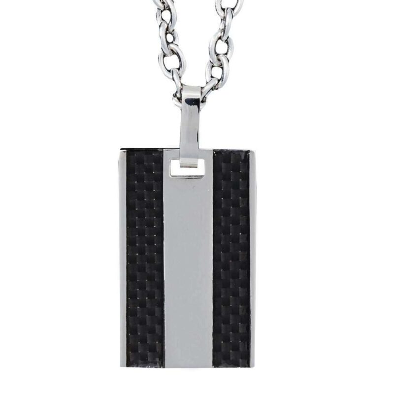 Anhänger Carbon mit Gravur Dieser tolle Anhänger ist mit Carbon-Elementen verziert. Mit Deiner Wunschgravur wird der Anhänger zu einem ganz persönlichen Unikat. Die Gravur wird auf der Rückseite des Anhängers aufgebracht und wird zentriert graviert. Diese ist bereits im Preis enthalten. Eine Gravur auf der Vorderseite ist leider nicht möglich. Die im Bild dargestellte Ankerkette können Sie hier zum Sparpreis mitbestellen. Material: Edelstahl / Carbon Länge inkl. Öse ca. 36 mm Breite: ca. 17 mm Gravur: weißlich schimmernd Versand: Papierbeutel oder optional Geschenkverpackung