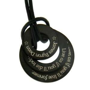 Dreiteiliger Anhänger aus Edelstahl Schwarz mit individueller Gravur – Material: Edelstahl – Größe: 30mm / 25mm / 20mm Durchmesser mit mittiger Aussparung – Stärke: 2mm – Oberfläche: mattiert – Gravur: wie von Ihnen im Design-Tool erstellt – Lieferumfang: incl. Lederkette mit Karabinerverschluss – Lieferung erfolgt in einer Schmuckbox DAS kreative Geschenk für die Freundin / den Partner. Die Rückseite kann gegen Aufpreis ebenfalls graviert werden.Wenn Sie noch Fragen haben rufen Sie uns einfach an unter: 02271 980080. Bitte beachten Sie: Artikel, die wir für Sie persönlich fertigen, indem wir Ihre Gravur darauf lasern, sind aus genau diesem Grund vom Umtausch- und Rückgaberecht ausgeschlossen: Also bitte keine Schreibfehler oder Zahlendreher! Wir liefern schnell: Nach Zahlungseingang gravieren wir Ihren Artikel innerhalb von 1-2 Werktagen … Außer wenn wir mit Ihnen Rücksprache halten müssen und Sie nicht erreichen können… Die Gravur wird mittels modernster Faserlasertechnik auf die Gravur-Oberfläche aufgebracht, wobei nur Zehntel Millimeter des Materials abgetragen werden, dies aber dauerhaft. Wenn Sie mögen, veröffentlichen wir gern Ihren Artikel – da dies auch in unserem Interesse ist, brauchen wir dafür Ihr Einverständnis. Das geben Sie uns – oder auch nicht, wie Sie mögen – bei der Bestellung an