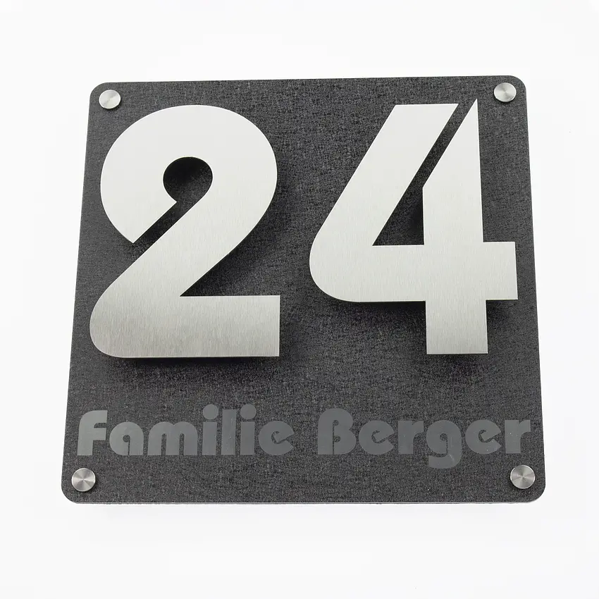 Edelstahl Hausnummer – Anthrazit Dibond Rückwand & Gravur Design Bauhaus