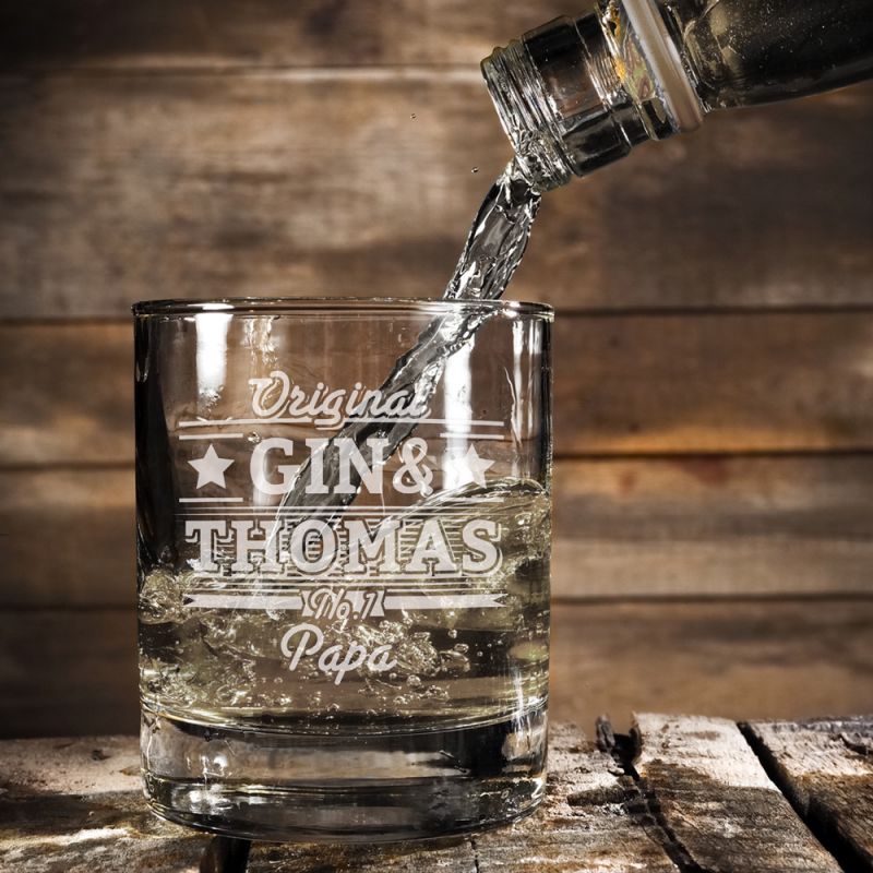 Ein köstlicher Gin ist ein großer Genuß – und ist für alle Papas jetzt noch genußvoller aus unserem Ginglas Tumbler mit Gravur für Vater – Gin & Papa – personalisiert. das ideale originelle Geschenk für Väter!