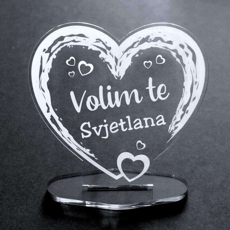 Acryl-Herz volim te mit Deiner Namensgravur Das perfekte Geschenk zu dem Tag für alle Verliebte – Valentinstag! Das schöne Herz ist mit dem Text volim te versehen. Zentriert unterhalb des Textes ist Platz für einen Namen. Vielleicht ja auch den Namen deiner Liebsten! Das langlebige Geschenk wird garantiert einen bleibenden Eindruck bei deinem Schatz hinterlassen. Der schöne Dekoartikel ist farblos und passt sich so hervorragend in dein Zuhause ein. Die Schriftart sowie die Anordnung der Gravur entnehme bitte dem Artikelbild. Viel Spaß beim Verschenken. Maße und Größe: Material: Acryl Höhe mit Fußplatte: ca. 15 cm Stärke: Herz 3 mm, Fußplatte 5 mm
