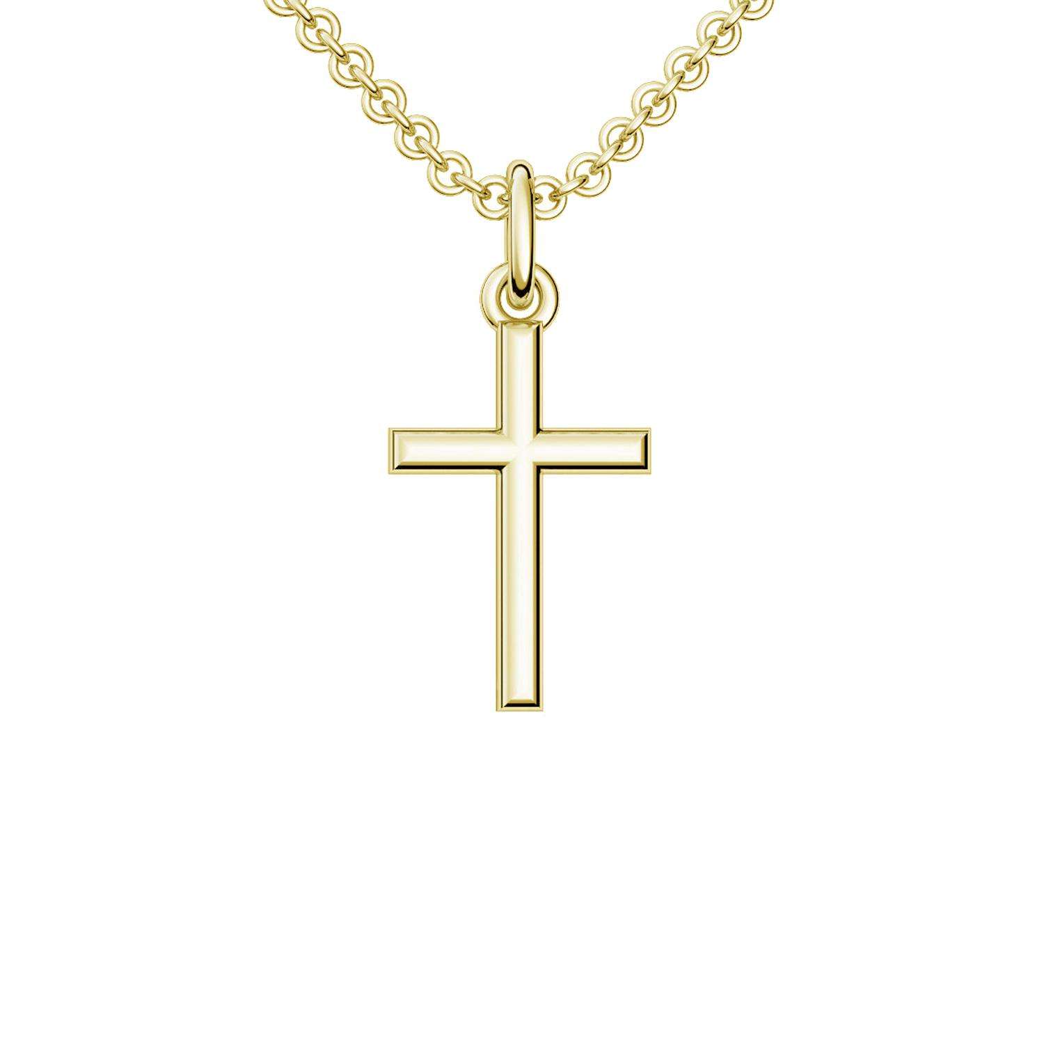 Die zeitlos klassische und elegante Kreuz Kette besteht aus Gelbgold vergoldetem Sterling Silber 925. Mit ihrem zeitlosen Design ist sie ein perfektes Geschenk zur Erstkommunion als Kommunion Kreuz oder Kommunion Kette, Geschenk zur Konfirmation, Firmungs Geschenk als christlicher Schmuck oder einfach eine schöne Modeschmuck-Kreuzkette für jeden Tag.