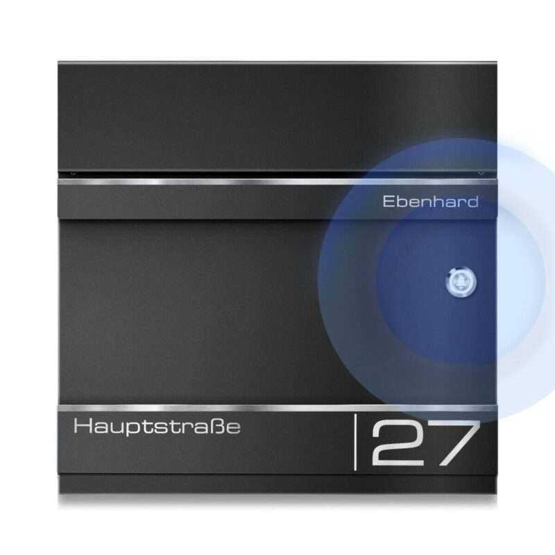 Briefkasten Hermann mit integrierter, kabelloser Funkklingel und Gravur Kombiniert das Beste aus 2 Welten: Funktürklingel und Briefkasten in einem innovativen Produkt. Durch die hohe Reichweite der kabellosen Funkklingel im Briefkasten kann dieser auch problemlos bei weitläufigen Grundstücken oder Gärten angebracht werden. Mit dieser hochwertigen und intelligenten Lösung heben Sie sich stilvoll von Ihren Nachbarn ab und sorgen für einen echten Hingucker in Ihrem Eingangsbereich. Der exklusive Metzler Briefkasten ist in RAL 9005 Tiefschwarz pulverbeschichtet. Die Frontblende besteht aus rostfreiem, pulverbeschichteten Edelstahl und bietet so einen idealen Kontrast. Für die individuelle Lasergravur können Sie aus unterschiedlichsten Schriftarten wählen, und so Ihren Briefkasten zusätzlich individualisieren. Der Briefkasten besitzt einen großzügigen Einwurfschlitz 335 x 35 mm. Somit können auch große Sendungen wie DIN A4 Umschläge problemlos eingeworfen werden ohne diese zu knicken.
