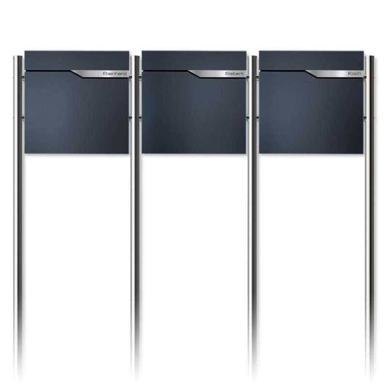 Metzler Standbriefkasten Mehrfamilienhaus | 3er | personalisiert mit Gravur | RAL 7016 Anthrazit