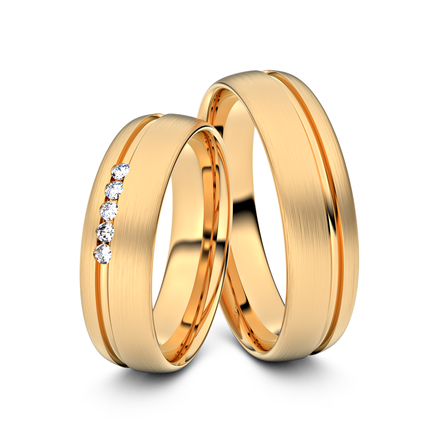 „Das Material ist aus 333er rosegold. Im Damenring finden wir einen Steinbesatz mit 5×0.01ct. Die Oberfläche ist auf Wunsch poliert oder mattiert. Die Breite beträgt 5.5mm und die Stärke beträgt 1.4mm. Alle Ringe werden in unserer eigenen Manufaktur hergestellt und innherhalb von 6-15 Tagen an Sie versendet.“