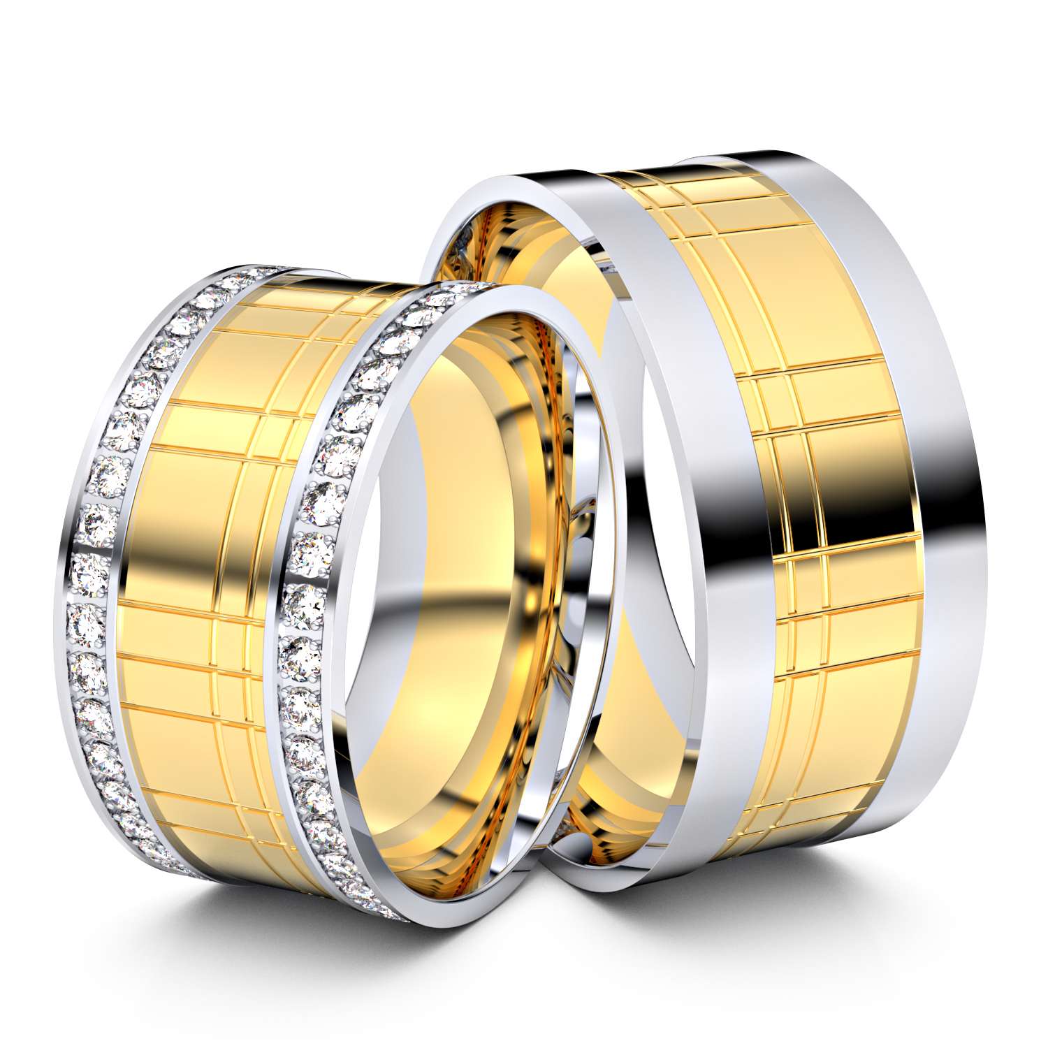 „Das Material ist aus 585er gelbgold-weissgold. Im Damenring finden wir einen Steinbesatz mit steinkranzx0.01ct. Die Oberfläche ist auf Wunsch poliert oder mattiert. Die Breite beträgt 9.5mm und die Stärke beträgt 1.4mm. Alle Ringe werden in unserer eigenen Manufaktur hergestellt und innherhalb von 6-15 Tagen an Sie versendet.“