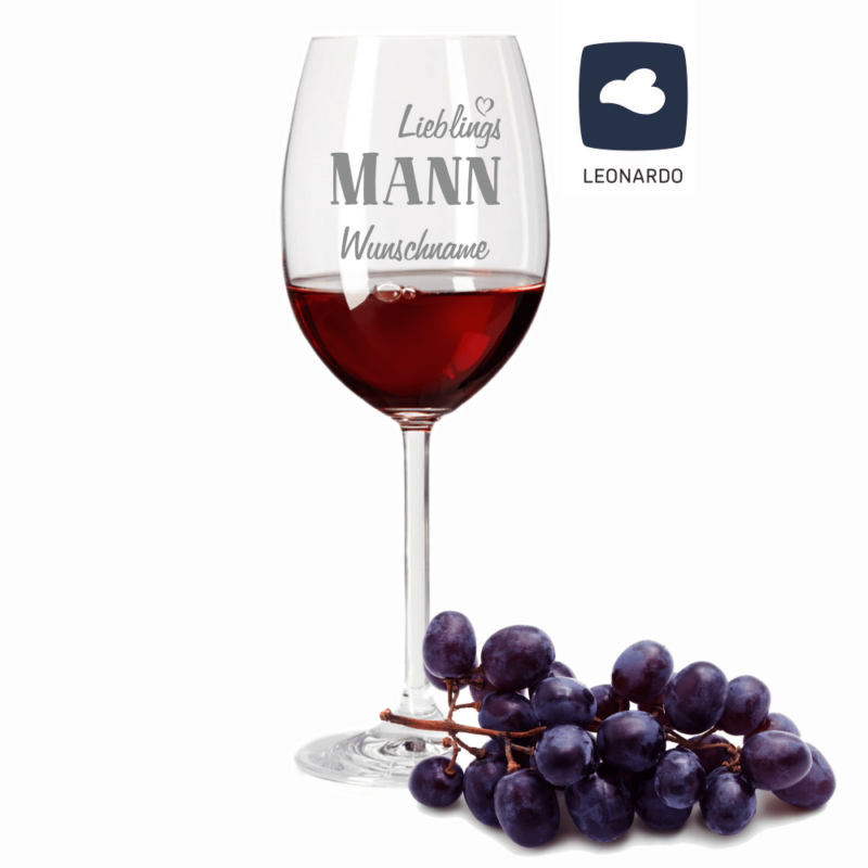 Das elegante Weinglas von Leonardo ist hier mit dem Text Lieblings-Mann versehen. Deinen Wunschnamen gravieren wir zentriert unterhalb des Titels. Anordnung und Schriftart entnehme bitte dem Artikelbild. Das Weinglas ist kratzfest und spülmaschinengeeignet. Die weißlich schimmernde Gravur kommt auf dem Glas perfekt zur Geltung. Eine schöne Geschenkidee für alle Deine Lieblingsmenschen. 🙂 Viel Spaß beim Bestellen! Normal 0 21 false …