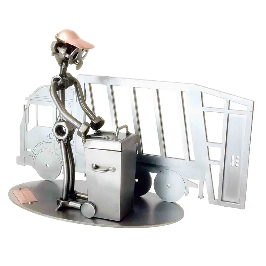 Dieses Schraubenmännchen zeigt einen Müllwerker, der gerade eine Mülltonne entleeren möchte. Mit Zuverlässigkeit und Einsatzbereitschaft sorgen die Müllwerker für Ordnung und Sauberkeit in unserem täglichen Leben. Das Schraubenmännchen Müllwerker ist eine prima Geschenkidee zum Geburtstag, zur bestanden Prüfung, zum Jubiläum oder zum Ruhestand. Optional liefern wir das Schraubenmännchen mit einem angehängten Schild, auf dem Ihr Wunschtext gedruckt wird. An dieses Aluminiumschild bringen wir mit zwei Schrauben eine Kette an, womit es an das Schraubenmännchen gehängt werden kann. Wir beschriften dieses Schild mit einem Geburtstagsgruß, einem Glückwunschtext zur bestandenen Prüfung, einem Gratulationstext zur Hochzeit, mit Worten der Auszeichnung zum Jubiläum und zur Pensionierung oder mit jedem anderen Spruch Ihrer Wahl. Geben Sie einen Wunschtext an, wird das Schraubenmännchen gegen Aufpreis mit einem kleinen Schild mit Kette geliefert. Auf dem Schild ist Platz für eine persönliche Botschaft, eine Widmung, Glückwünsche oder einen passenden Spruch. Das Schildchen mit Kette kann an die Figur gehängt werden. Das Schild ist ca. 9 x 6 cm groß.