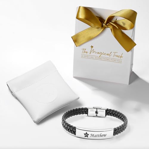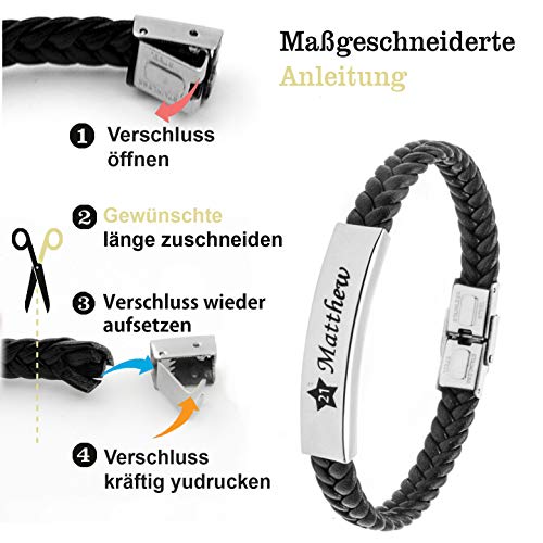 Personalisiertes Leder Armband mit Gravur | braun schwarz| mit namen für Männer und Jungs Geschenk für Ihn | Jahrestag Valentinstag Geburtstag Glücksbringer