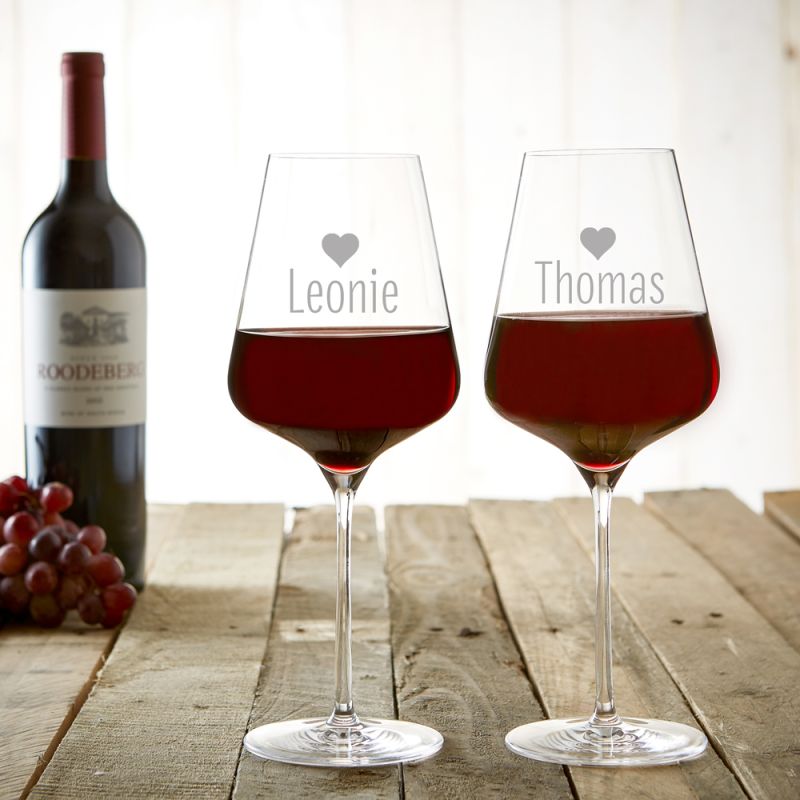 Ein guter Wein ist immer eine gute Idee – aber zu zweit wird auch der beste Wein noch besser. Vor allem, wenn er mit einem geliebten Menschen getrunken wird. Unser Weinglas mit Gravur – Herzen – Personalisiert – 2er Set ist genau dafür gemacht. Das romantische Herzmotiv und die individuelle Namensgravur machen die Rotweingläser zum perfekten Accessoire für den edlen Tropfen zu zweit – und zu einem persönlichen Geschenk, das seinesgleichen sucht.